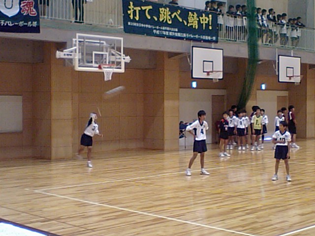 いよいよ秋季大会が始まりました。 男子バレー部の第一戦は、中央中との対戦です。現在、12対8でリードしています。
