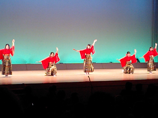 宮崎地区文化祭で、宮崎物語部がステージ発表しました。 2年生5名の部員が、練習してきた舞をしっかり演じることができました!